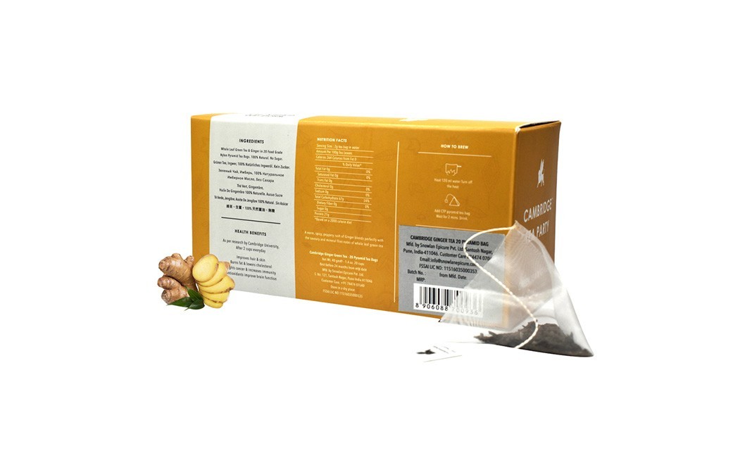 • Cambridge Tea party Whole Green Tea & Ginger    Pack  20 pcs