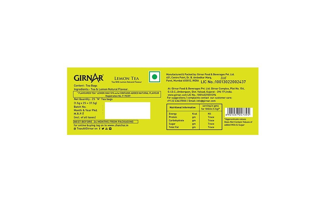 "Flavoured Tea" Lemon Max 10% w/w Contains Added Natural Flavour.