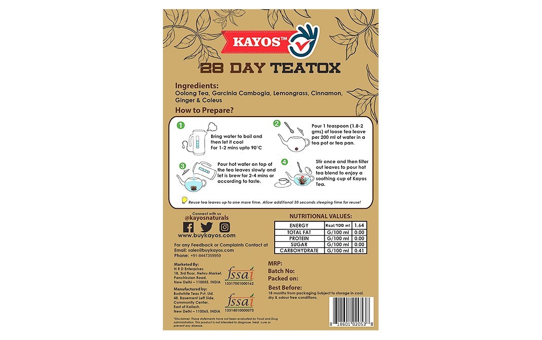 • Kayos 28 Day Tea Tox with Garcinica Cambogia and Oolong Tea   Pack  100 grams
